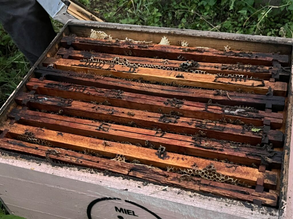 «Se reducen a unas 2,000 abejas, a veces a 50,000 abejas. Es muy variable una colmena, pero una colmena de doble alza, unas 50,000 abejas más o menos».